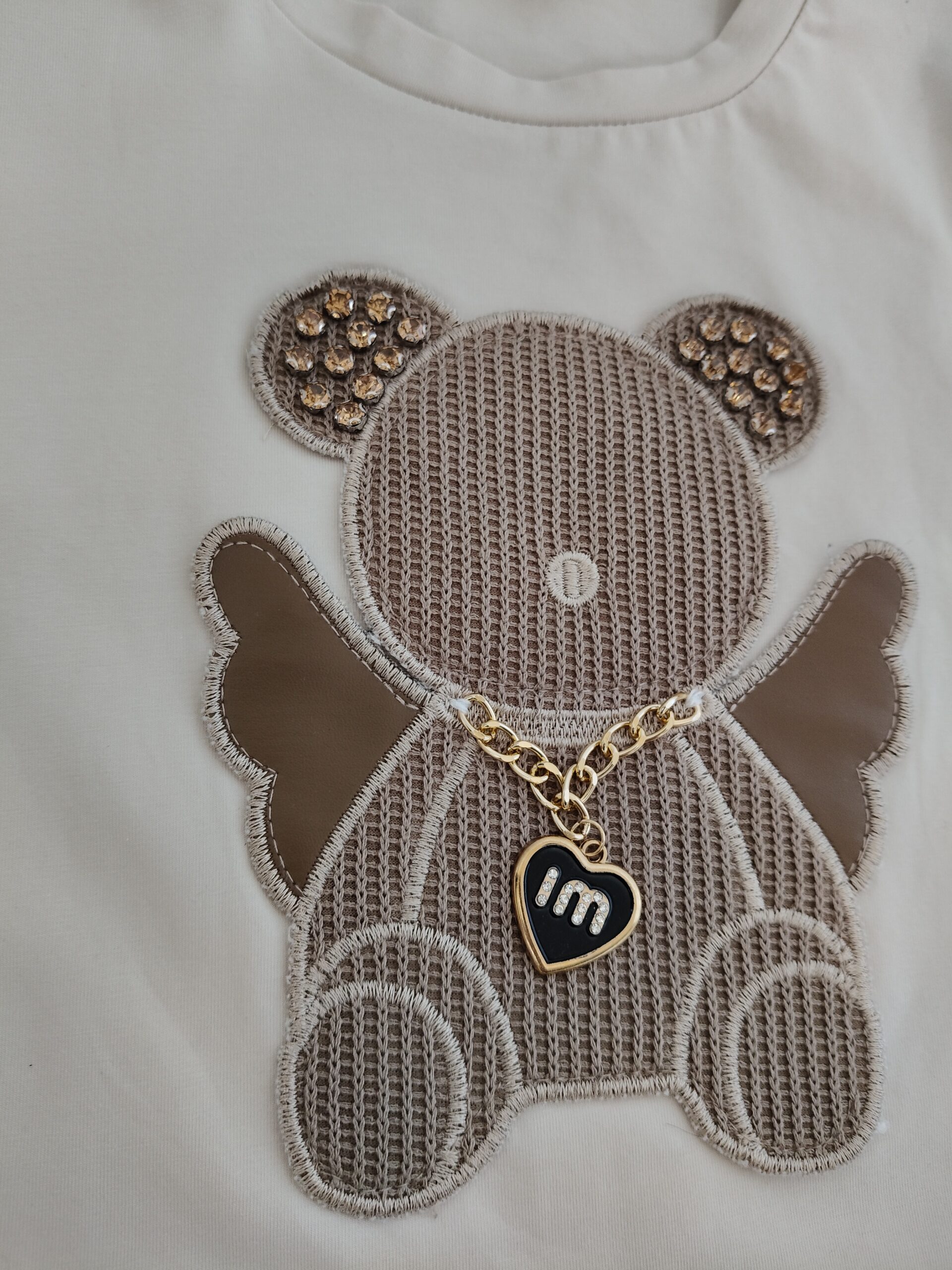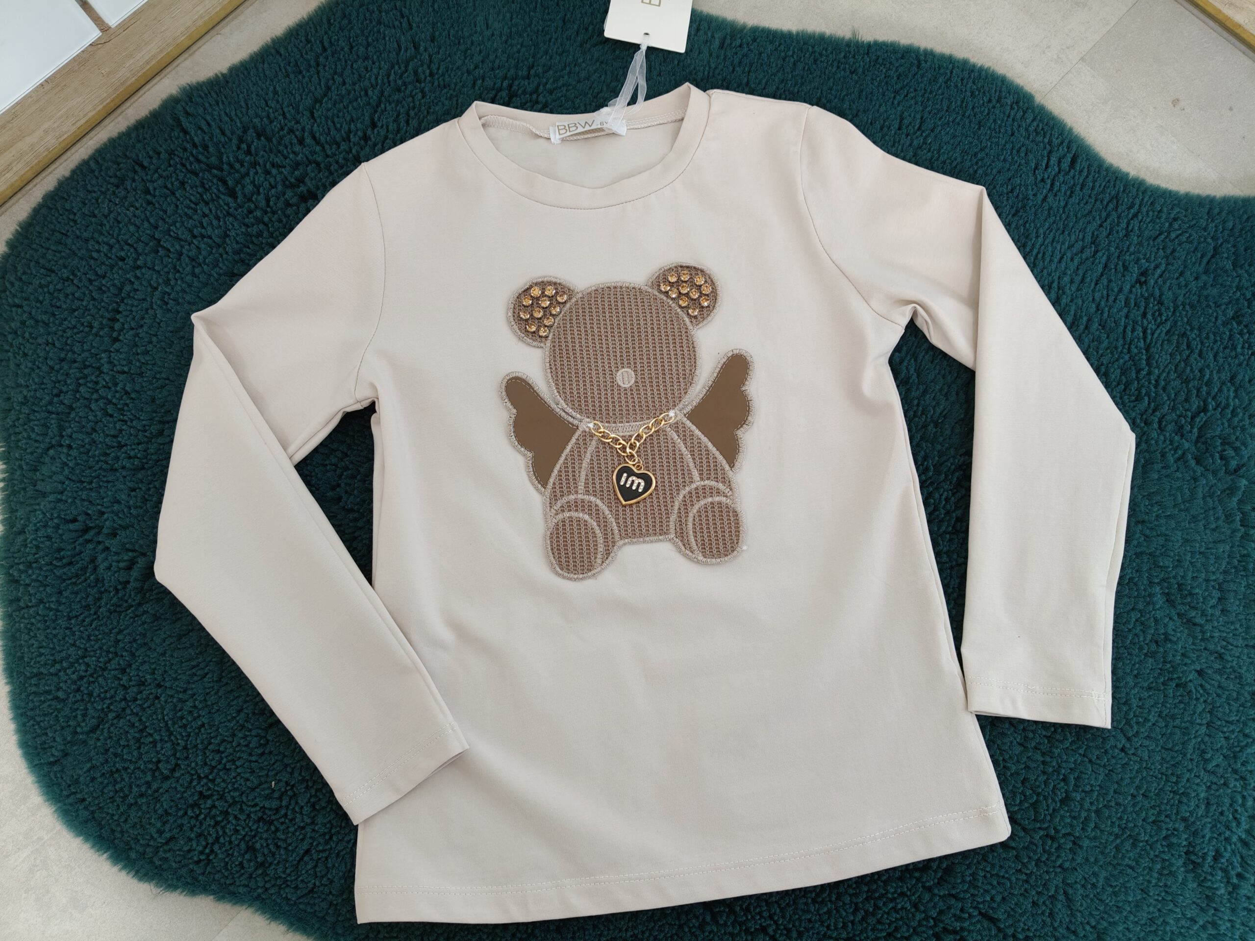 Coś pięknego. Bluzeczka bawełniana z naszywanym misiem struktury sweterka