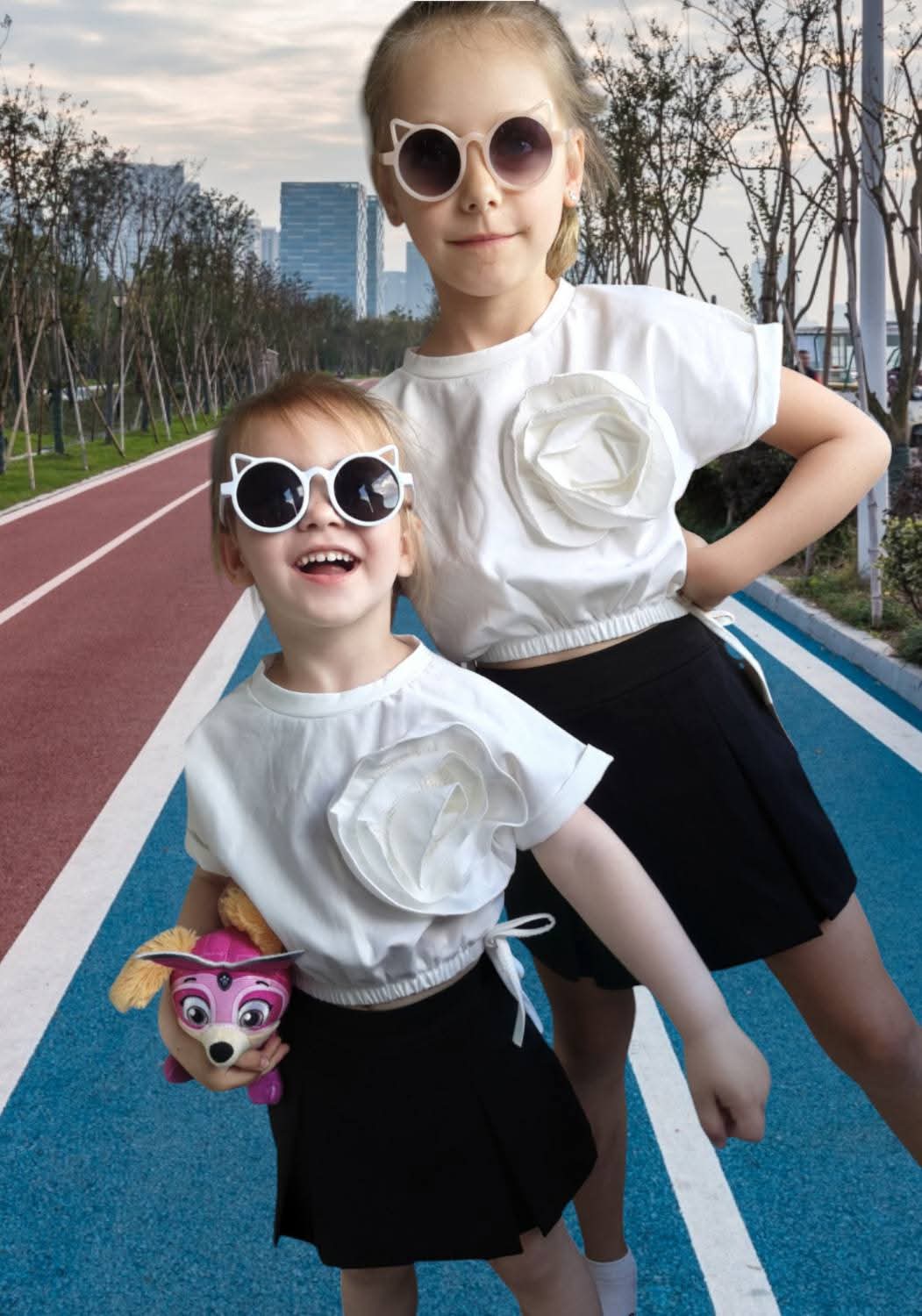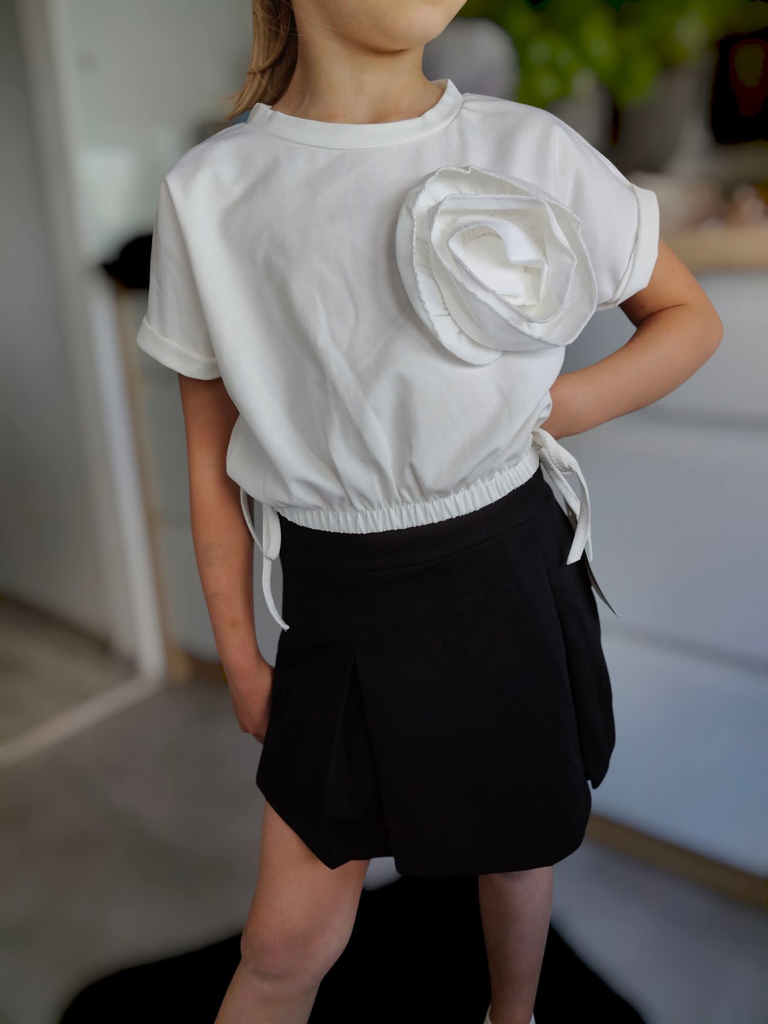 Idealny komplet na zakończenie roku szkolnego i nie tylko 😉 spódniczko spodenki i biała bluzka z pięknym kwiatkiem